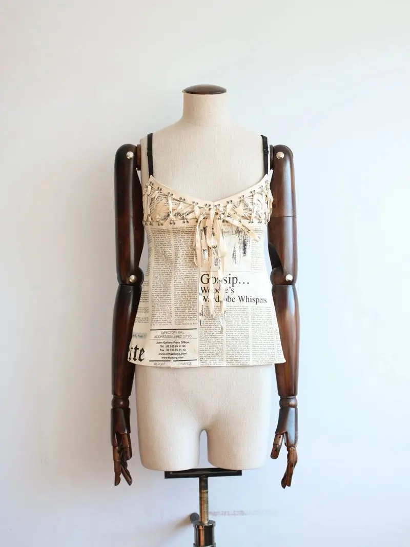 JOHN GALLIANO A/W04 SILK GAZETTE PRINT LACED CAMISOLE