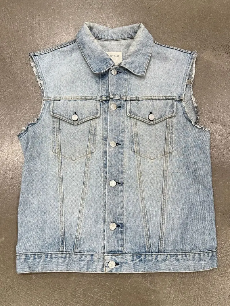 2000S HELMUT LANG LIGHT WASH RAW EDGE DENIM VEST