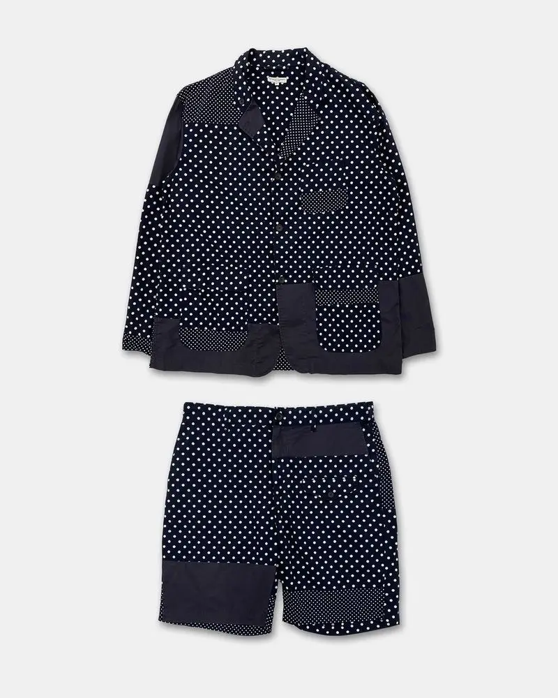ENGINEERED GARMENTS SS2019 POLKA DOT COTTON BLAZER JACKET AND SHORTS SET NAVY