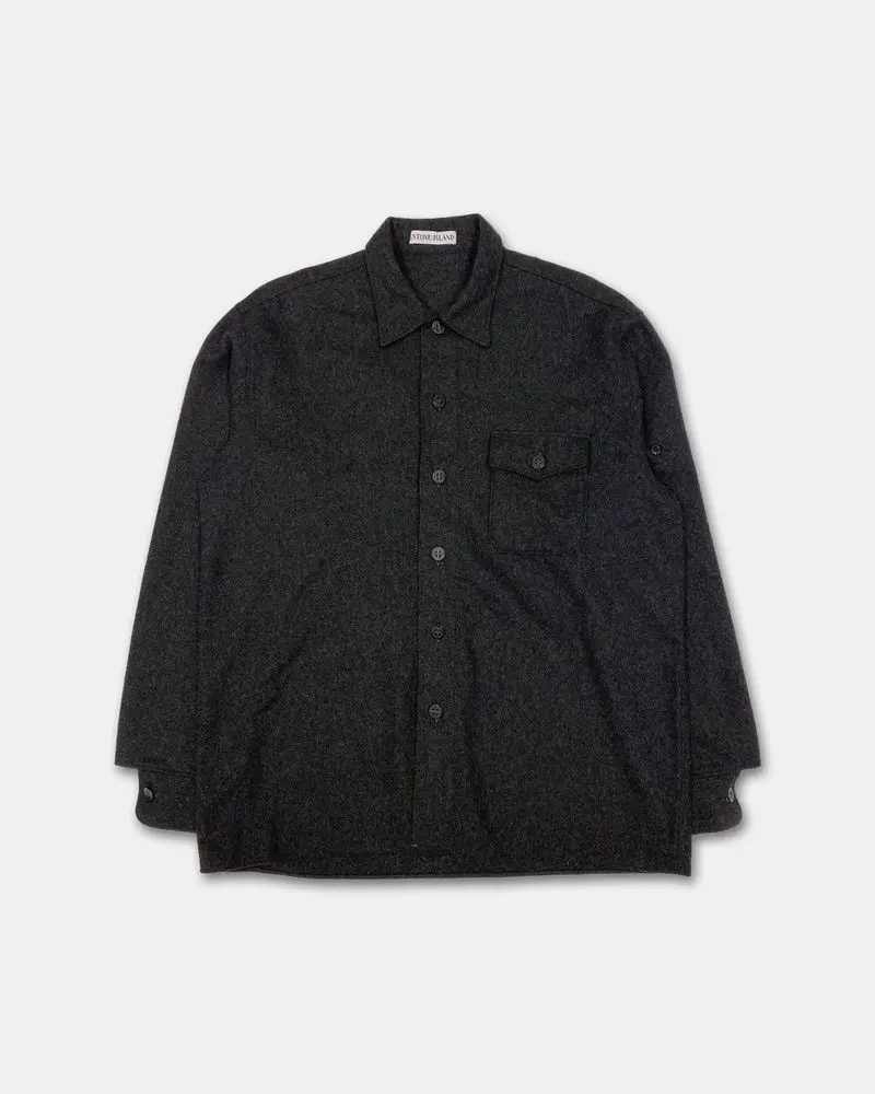 STONE ISLAND BY MASSIMO OSTI 1980S CHEST POCKET WOOL SHIRT DARK GREY