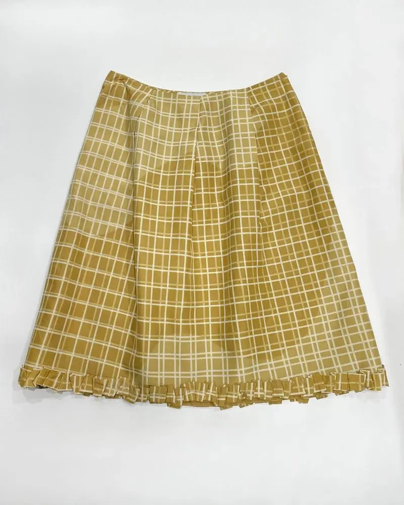PRADA SPRING 1999 CHECKED SILK SKIRT
